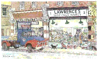 Lawrence's Vegatable Market, 2 Hollybush Terrace, Westow Street. The Lawrence family have had fruit and vegetable shops in the area since 1951 when they came from "over the water". Alfred Lawrence started business in Westow hill - three generations of the family have traded in the Triangle. Randles Jewellers can be seen just behind the lorry. Both shops in view are still trading. |