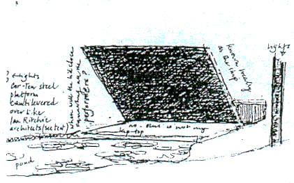 steel platform cantilever over lake, designed by Ian